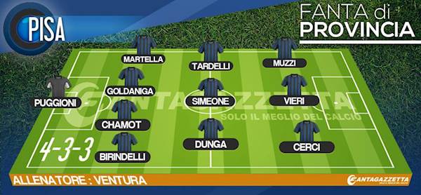 IL NOSTRO 'FANTA11 DI PROVINCIA' - Come ogni formazione che si rispetti si parte sempre dal ruolo dell'estremo difensore; per il nostro Fanta di provincia legato al Pisa la scelta è ricaduta su Christian Puggioni: pur portando il numero 1 sulle spalle il portiere originario di Genova è l'attuale vice di Viviano nei ranghi della Sampdoria; in questa stagione Puggioni ha messo assieme 5 presenze sfruttando le assenze del compagno di squadra e riuscendo ad esordire nel derby della Lanterna alla tenera età di 35 anni, per lui un passato con 3 stagioni con la maglia del Pisa di cui è stato anche capitano. Per la difesa abbiamo optato per un reparto a 4 alla ricerca del modificatore che potrebbe lanciare la nostra squadra verso la vittoria; il primo elemento è stato l'emblema dell'affidabilità e della professionalità nella più classica delle esaltazioni della classe operaia nelle squadre vincenti, ci stiamo riferendo ad Alessandro Birindelli, pisano di nascita che volle tornare a casa dopo la vittoriosa esperienza con la Juventus; al centro della difesa José Antonio Chamot Picart, portato in Italia da Anconetani dal Rosario Central, rimase 3 stagioni a Pisa prima di incontrare Zeman a Foggia e lanciare dunque la sua carriera verso Lazio prima ed Atletico Madrid poi; al suo fianco mettiamo Edoardo Goldaniga che nel 2013-14 fece il suo esordio tra i professionisti proprio con la maglia nerazzura dopo i due anni trascorsi al Pizzighettone in Serie D, attualmente a disposizione di mister Iachini nel Palermo in questa stagione ha già accumulato 10 presenze con i siciliani; a completare il reparto un altro protagonista della nostra attuale Serie A, quel Bruno Martella acquistato in estate da moltissimi fantAllenatori con la speranza di trovare un difensore che portasse molti bonus finora ha deluso mantenendo una media al di sotto della sufficienza. Passiamo al centrocampo, vero punto di forza di questa formazione, ad aprire le danze è il brasiliano Carlos Caetano Bledorn Verri, meglio noto come Carlos Dunga, prelevato dalla Fiorentina nell'autunno del 1987 il mediano futuro campione del mondo venne girato in prestito al Pisa al fine di ambientarsi nel nostro campionato; a fianco del brasiliano schieramo l'attuale allenatore dell'Atletico Madrid ed ex centrocampista, tra le altre, di Inter e Lazio Diego Pablo Simeone: portato in Italia giovanissimo assieme a Chamot grazie ad una prodigiosa intuizione di Romeo Anconetani il "Cholo" rimane a Pisa per due stagioni per un totale di 55 presenze e 6 reti all'ombra della Torre Pendente; infine per completare il nostro centrocampo "da urlo" inseriamo uno degli eroi di Spagna '82, quel Marco Tardelli passato alla storia per l'ormai celebre esultanza nella finale del Mundial, il cinque volte campione d'Italia iniziò la sua carriera da professionista proprio a Pisa, disputando due campionati di Serie C, 41 presenze e 4 reti, prima di essere prelevato dal Como nell'estate 1974. Passiamo ora all'attacco partendo da chi in quel di Pisa vide lanciare la sua carriera verso "il calcio che conta", stiamo parlando di Alessio Cerci, letteralmente esploso con la maglia nerazzurra con cui ha realizzato 10 reti in 26 presenze nella stagione 2007-08, prima che un infortunio al ginocchio lo costringesse a chiudere anzitempo la stagione. Al centro dell'attacco schieriamo il bomber per eccellenza, chissà in quanti di voi ricordano le 18 presenze in Serie B di Christian Vieri nella stagione 1992-93 con la maglia del Pisa, dopo essere stato acquistato dal Torino nell'estate del 1990 ed inserito nel settore giovanile il Bobone Nazionale venne mandato in prestito in Toscana per mettersi in luce tra i grandi, obiettivo decisamente mancato viste le sole 2 reti realizzate complessivamente in quella stagione. Ultimo elemento del nostro reparto offensivo è l'attaccante che venne designato dal Pisa come l'erede di Vieri, nel novembre del 1993 sbarcò in riva all'Arno il ventiduenne Roberto Muzzi, anche lui mandato in prestito, questa volta dalla Roma, chiuse la stagione con 8 reti all'attivo in 23 presenze prima di tornare a Roma e poi spiccare il volo verso Cagliari ed Udine dove lo ricordano ancora con estremo piacere. A guidare una formazione così tanto sbilanciata verso l'attacco non può che essere il tecnico della libidine e, soprattutto, attuale selezionatore della Nazionale Italiana Giampiero Ventura: il CT azzurro trascorse poco meno di due stagioni sulla panchina del Pisa, precisamente dal giugno 2007 all'aprile 2009 prima di essere esonerato dopo un filotto di quattro sconfitte e lasciando la squadra in una situazione di classifica tale che la stagione terminò con la retrocessione tra la contestazione del focoso pubblico pisano.