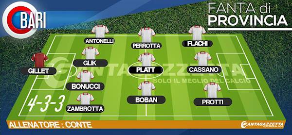 Tridente d’attacco all’insegna della fantasia, del killer instinct, e interamente italiano per il Fanta11 biancorosso. Per diritto di nascita vi gioca Antonio Cassano, grande occasione persa del calcio italiano, ma ridendo e scherzando il Pibe di Bari Vecchia ha trovato il +3 140 volte in carriera (6, alcune neanche da maggiorenne, in Puglia). Non uno scherzo, per chi prima punta (o falso nueve) non lo è mai stato. Con lui un altro che, come Cassano, l’apice della sua carriera lo ha vissuto alla Samp, ma che prima di arrivare un blucerchiato, ed entrare anch’egli nel club degli over 100 in carriera (133 volte +3, contando tutte le categorie e competizioni), e molto prima dei problemi che ne arrestarono la carriera, vestì la maglia biancorossa: per Francesco Flachi l’esperienza al San Nicola durò una stagione, in prestito dalla Fiorentina, da giovanissimo, ma la stoffa già c’era. Punta di diamante dell’attacco biancorosso, l’incarnazione di un bug statistico: è possibile laurearsi capocannoniere in una squadra che retrocede a fine anno. E’ possibile, se ti chiami Igor Protti, che ai primi, pionieristici fantamister, nel 1996 regalò 72 punti di bonus, grazie alle 24 reti che, in coabitazione con Signori (ma con meno rigori calciati) lo fecero entrare nella storia del calcio italiano come capocannoniere. Protti in A ci rimase, passando prima alla Lazio, poi al Napoli, prima di vivere un grande finale di carriera nell’altra sua Eldorado, Livorno, dove (come a Bari) è rimasto un re. 248 reti in carriera per Igor, che per 46 volte in maglia biancorossa fece il mitico trenino per festeggiare un suo gol.