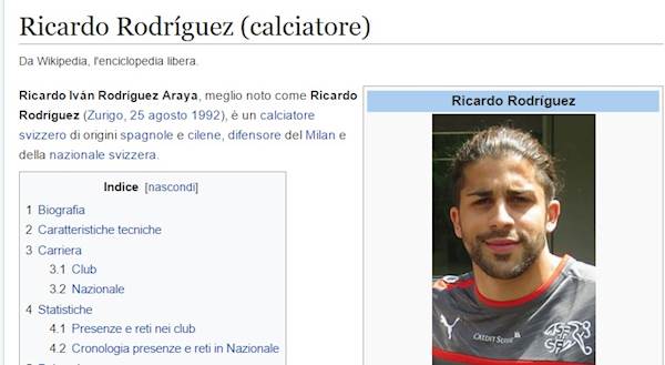 Rodriguez, nelle intenzioni del Milan, andrà a prendere il posto di De Sciglio promesso sposo della Juventus per 15 milioni circa. 25 anni da compiere, svizzero ma di origini spagnole e cilene, il terzino è il prescelto della società: ora sta solo al nuovo DS definire l'accordo. Un accordo che, in ogni caso, sembra ben intrapreso. E per Wikipedia, intanto, il trasferimento è già andato in porto...