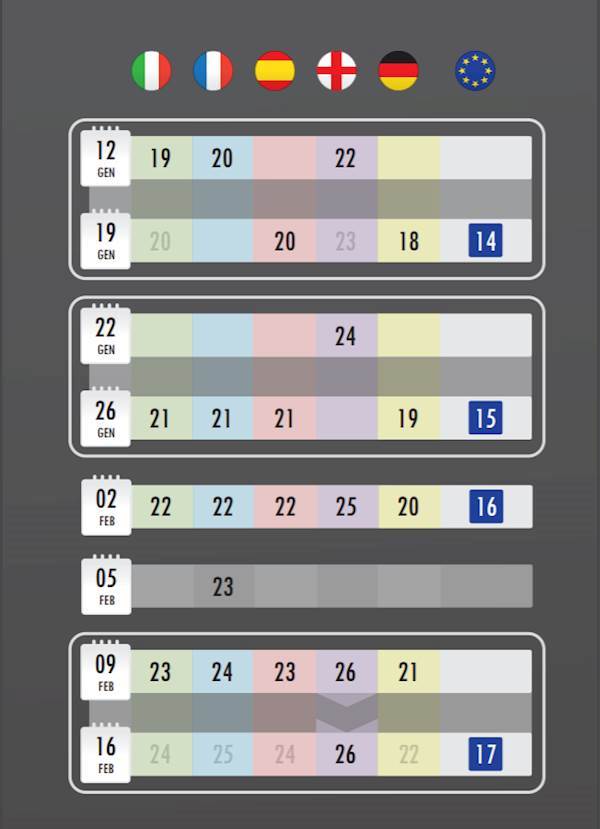 Clicca qui e scarica il calendario Euroleghe e tutti i suoi accoppiamenti
