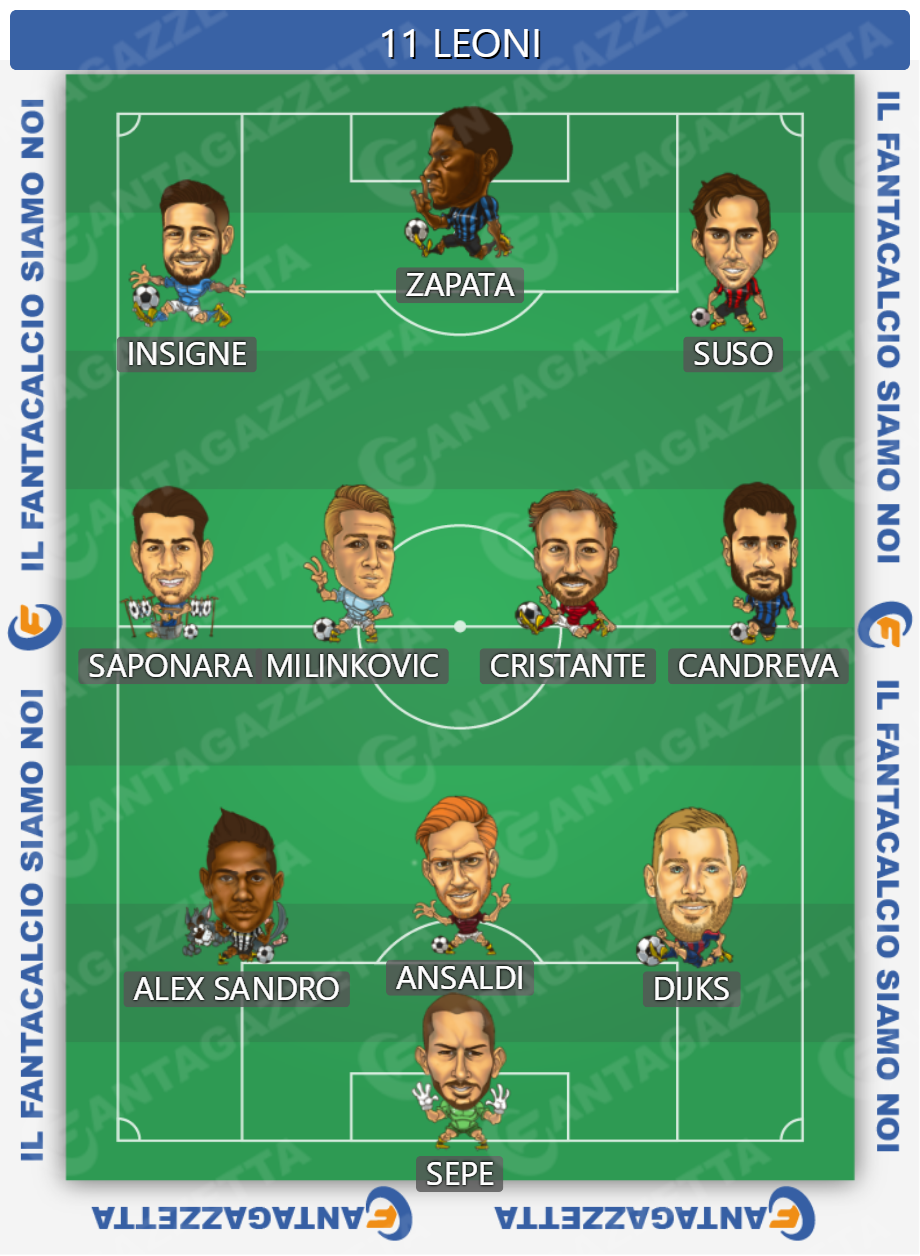 Fantallenatori, siamo tornati! Ricomincia il campionato, ed ecco, puntuali, gli 11 leoni, appuntamento ormai atteso da tantissimi utenti, pronti a seguire i nostri consigli. Come successo nella scorsa stagione, prima di ogni giornata di campionato, l'intera redazione si riunisce in seduta plenaria per fornirvi l'undici ideale relativo al turno di campionato in esame. Nulla a che vedere, ovviamente, con lo spazio dei nostri indipendentissimi Signor Cotenna e della sua Signora, che, ormai da anni a questa parte, ci inviano i loro consigli dall'esterno dello staff e, soprattutto, da lontano. Meglio: Da luoghi, posti ed in condizioni psico-fisiche inimmaginabili. In questo spazio, invece, sarà lo staff a votare e proporre, di volta in volta, il suo 3-4-3 (o 4-3-3) ideale. Nei limite del possibile, sempre pronto a sorprendervi.