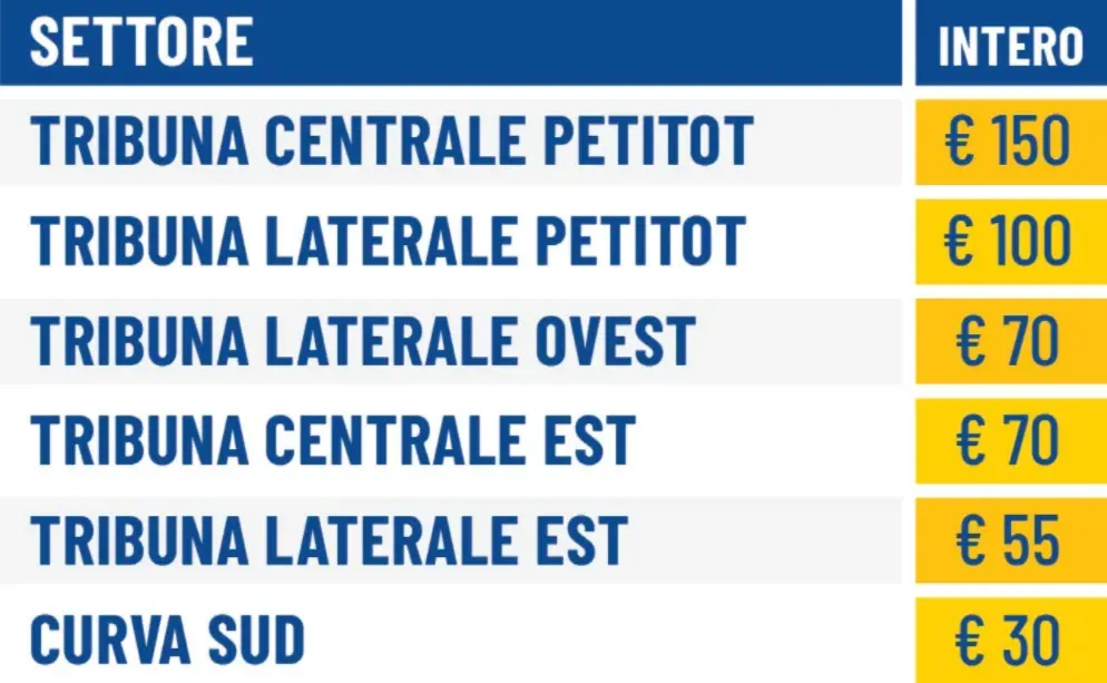 Prezzo settore ospiti: € 30