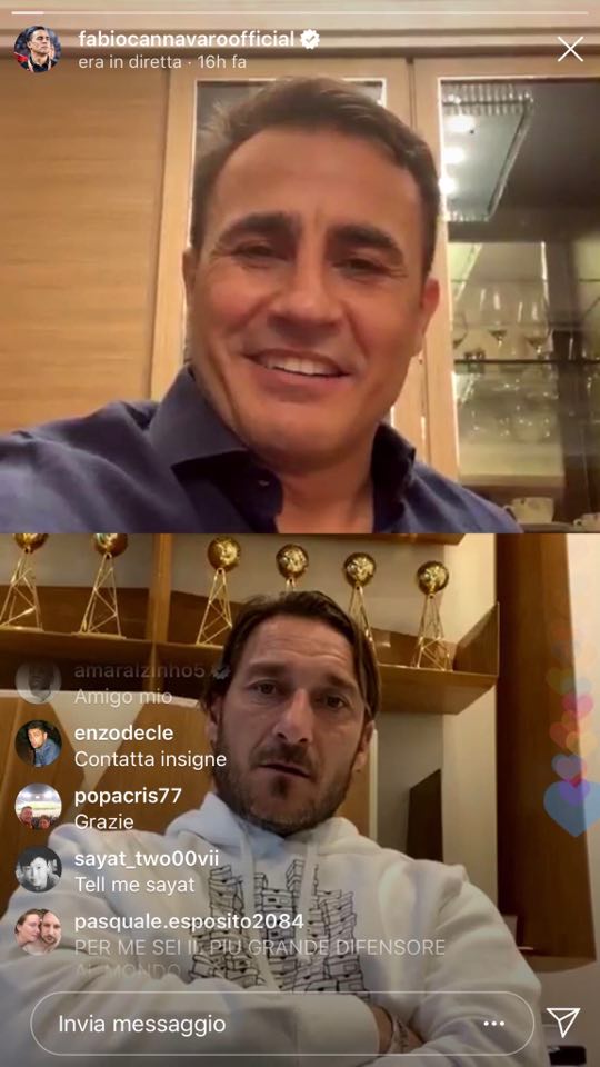 Una di queste potrebbe essere quella inerente alla presenza di Francesco Totti al suo fianco. A svelarlo, in maniera scherzosa, è stato proprio il campione giallorosso in una diretta Instagram con Fabio Cannavaro.