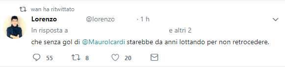 Ancora polemiche per quella che è la gestione dei rapporti di Wanda Nara tra il suo assistito, prima ancora che marito, Mauro Icardi, e l'Inter. Soltanto un'ora fa, la moglie e procuratrice dell'oramai ex capitano dell'Inter, tra i tanti retweet degli auguri di compleanno per il marito, ha riportato all'attenzione dei suoi followers anche uno in cui si spiegava di come l'Inter "senza gol di Icardi starebbe da anni lottando per non retrocedere".