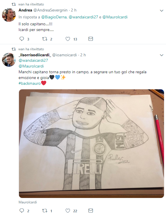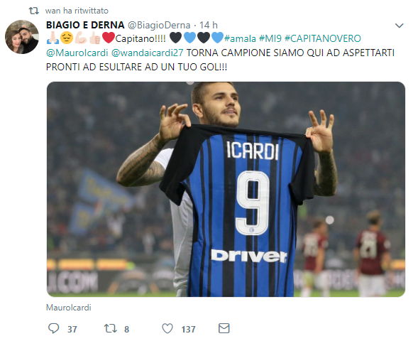 Da un lato, allora, c'è la volontà di dimostrare che non tutti remano contro Icardi, dall'altra, probabilmente, quella che in realtà, sotto sotto, potrebbe essere ancora la volontà principale della coppia, a Milano da 6 anni: tornare a giocare con la maglia dell'Inter. Che è poi quello che si augurano alcuni tifosi retwittati proprio dalla Nara.
