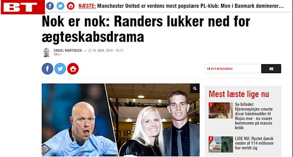 Borring è talmente umiliato e scosso dal tradimento che decide di lasciare i Randers: “Finchè sarà un giocatore di questa squadra – dichiara - io mi rifiuterò di scendere in campo. Lui ha violato la prima regola dello spogliatoio, è come mi avesse accoltellato alle spalle. Io e Kira abitiamo ancora sotto lo stesso tetto, abbiamo due figli da accudire e crescere. Tecnicamente siamo ancora marito e meglio". La teoria è spesso cosa diversa dalla pratica. Intanto la società decide di allontanare Keller. Il tecnico Todd lo sospende per motivi sportivi e il centrocampista commenta la vicenda e reagisce in modo pacifico e arrendevole: "Faccio ciò che è meglio per il Randers – spiega - anche se questo significa non giocare. Sono qui da molto tempo, ho rispetto sia per il club che le persone che qui lavorano". Non solo: la relazione con la moglie di Borring la ammette in maniera trasparente: “Ho parlato al resto della squadra quanto è successo e quello che penso. Io non sono una persona gelida, capisco come possa sentirsi Borring e la squadra. Ho un cuore e l'ho seguito, esattamente come ho fatto con i miei sentimenti, altrimenti non ci troveremmo in questa situazione”.