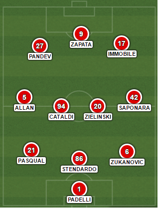 Centrocampo a quattro formato da Allan (tre annate ad alti livelli a Udine, poi il passaggio a Napoli per 12 milioni di euro più il prestito biennale di Zapata), Piotr Zielinski (uno dei tantissimi gioielli coltivati dai friulani, ma lasciato andare via troppo facilmente in direzione Empoli), Riccardo Saponara (all'Empoli deve quasi tutto: tre anni in B e poi tre anni in A, per un totale di 157 presenze e ben 28 centri) e Danilo Cataldi (laziale di fede, esploso nelle giovanili biancocelesti e con il desiderio di diventare in futuro una colonna dei capitolini).