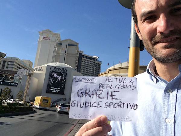 Ieri, il giudice sportivo ha rettificato l’assegnazione dei cartellini gialli, togliendo quello a De Silvestri e dandolo a Baselli. 81,5 che diventa 82,0. La Real Castro ha sconfitto la AC TUA, incarnazione ideale dei poteri forti di questa lega Fantascoppi.