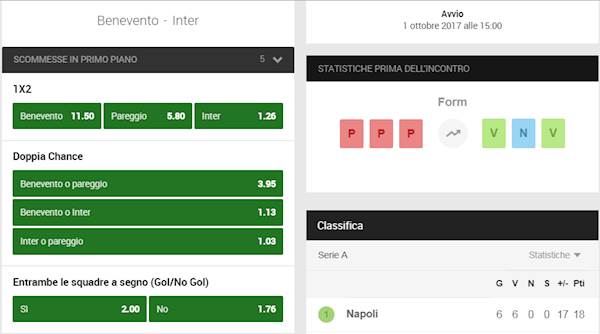 TUTTE LE QUOTE E SCOMMETTERE SUBITO
