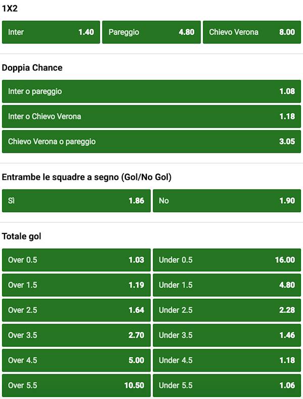 TUTTE LE QUOTE E SCOMMETTERE SUBITO