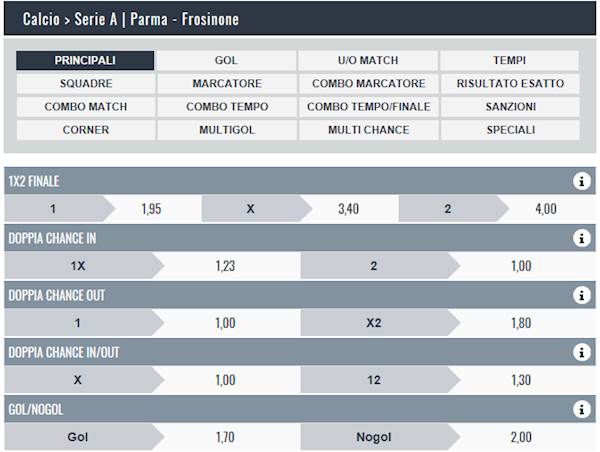 TUTTE LE QUOTE E SCOMMETTERE SUBITO