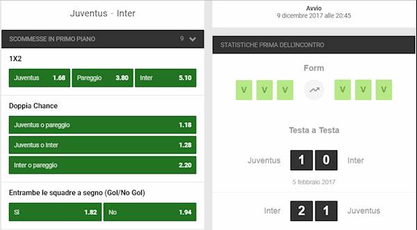 TUTTE LE QUOTE E SCOMMETTERE SUBITO