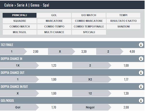 TUTTE LE QUOTE E SCOMMETTERE SUBITO