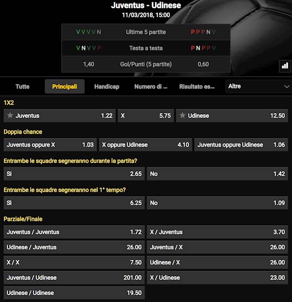 TUTTE LE QUOTE E SCOMMETTERE SUBITO