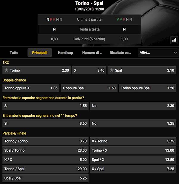 TUTTE LE QUOTE E SCOMMETTERE SUBITO
