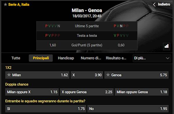 LE QUOTE DI BWIN: