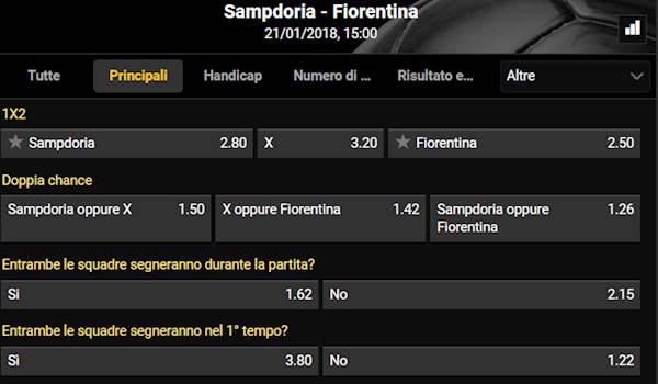 TUTTE LE QUOTE E SCOMMETTERE SUBITO