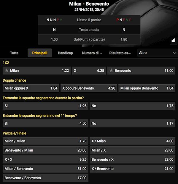 TUTTE LE QUOTE E SCOMMETTERE SUBITO