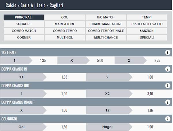 TUTTE LE QUOTE E SCOMMETTERE SUBITO