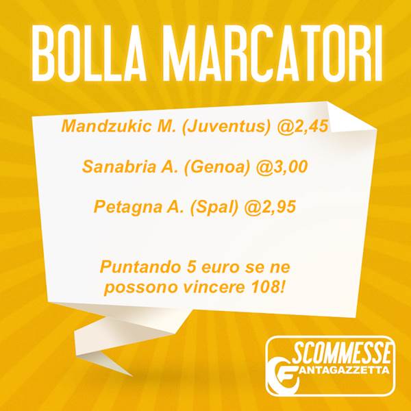 Dopo aver pronosticato i portieri che probabilmente rimarranno imbattuti nella prossima giornata e le squadre che con molta probabilità beneficeranno di un calcio rigore, le #ScommesseFantagazzetta tornano a coniugare il Fantacalcio con le Scommesse, questa settimana con una tripla marcatori niente male, relativa alle gare delle 15.00 della Domenica, che moltiplica circa 22 volte la posta, incentrato sui marcatori delle rispettive gare!
