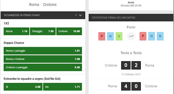 TUTTE LE QUOTE E SCOMMETTERE SUBITO