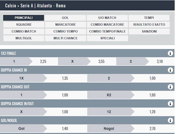 TUTTE LE QUOTE E SCOMMETTERE SUBITO