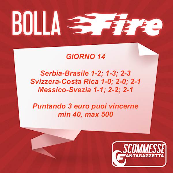Nella proposta di gioco odierna le #ScommesseFantagazzetta questa settimana propongono un 3x2 Mondiale,che permette una buona vincita con una puntata di 3 euro, incentrato sulle gare della 14.a giornata dei campionati del Mondo di Russia 2018!