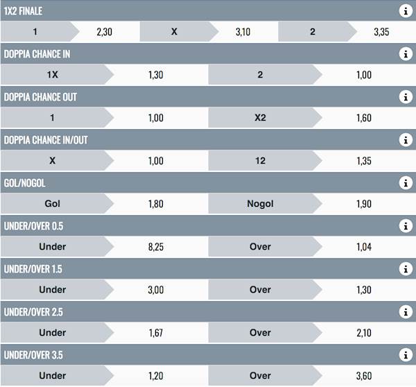 TUTTE LE QUOTE E SCOMMETTERE SUBITO
