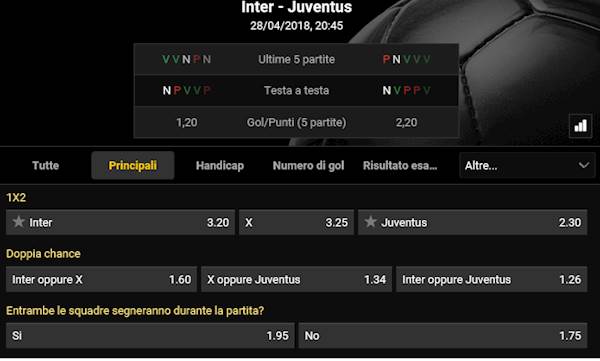 In uno stadio San Siro tutto esaurito la Juventus, quando mancano 4 giornate alla fine, si gioca una grossissima fetta di scudetto, avendo solo un punto di vantaggio sul Napoli. Lo sa bene Allegri che, dopo la sconfitta in casa contro i partenopei, spera in un moto d’orgoglio dei suoi in questo finale di stagione in cui rischia di rimanere a mani vuote. L’Inter, acerrima rivale, è pienamente in corsa per un posto in Champions League, fondamentale per salvare la solita stagione fatta di alta e bassi dei nerazzurri. Sfida che incollerà tutti davanti ai teleschermi e che, dato le generose quote, potrebbe regalarci delle gioie bettistiche non indifferenti.