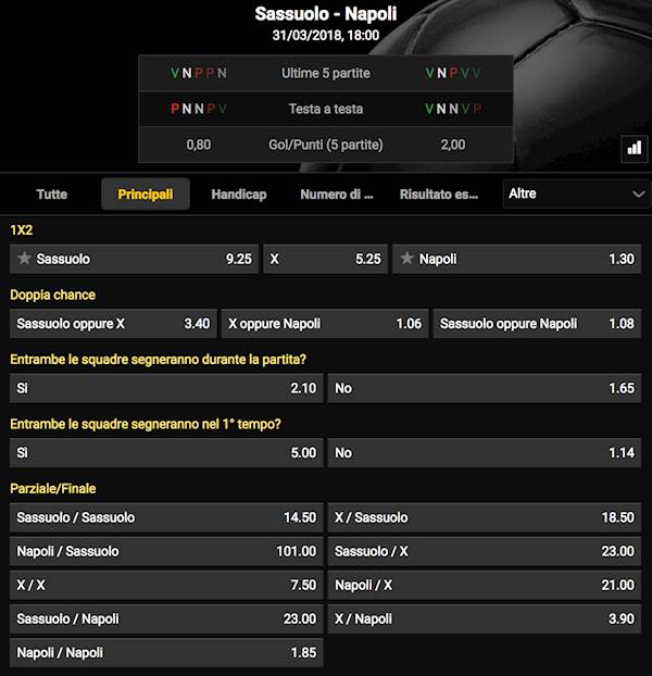 TUTTE LE QUOTE E SCOMMETTERE SUBITO
